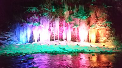 夜になるとライトアップされる『三十槌(みそつち)の氷柱』です。