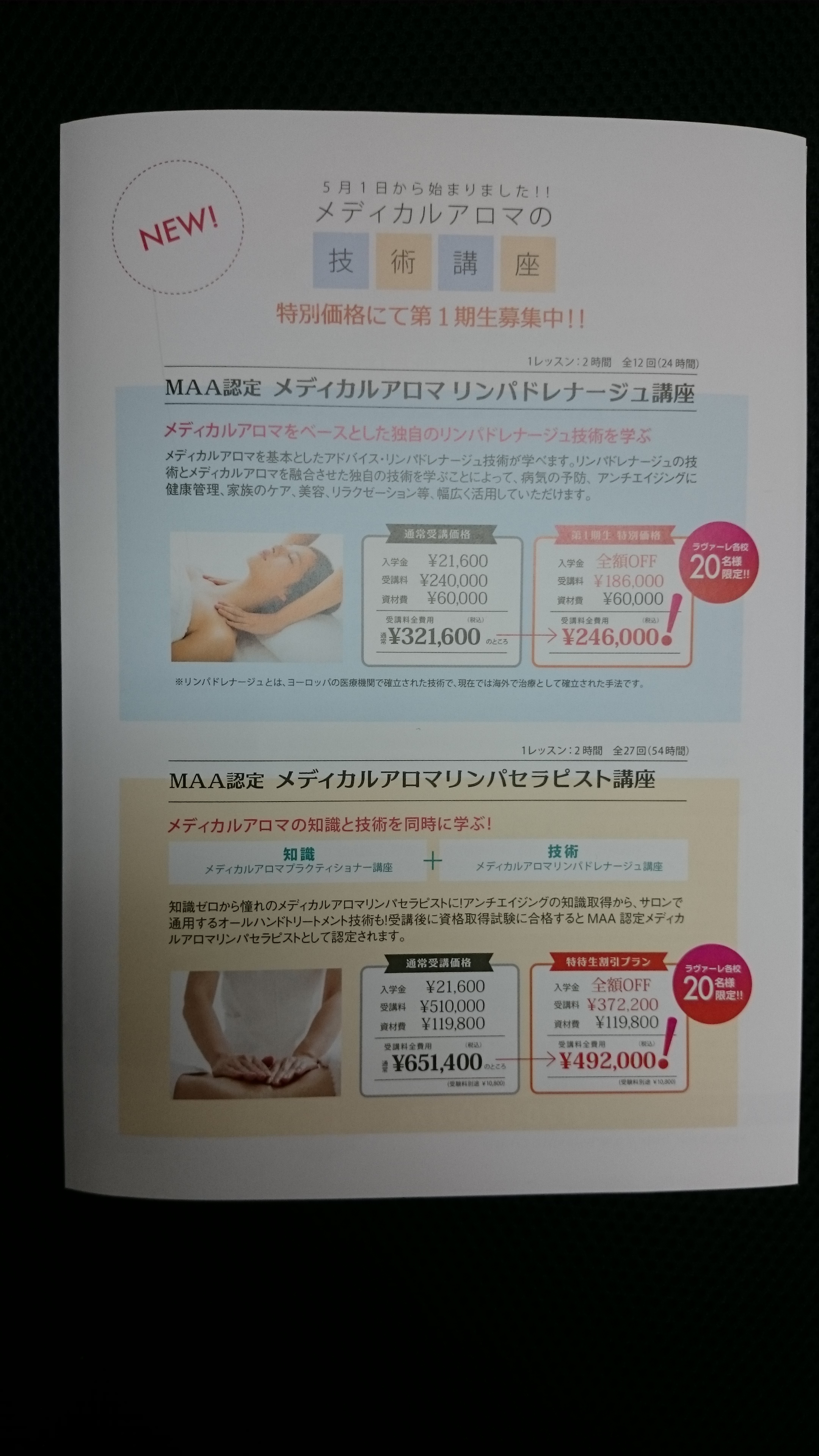 新しく【MAA認定メディカルアロマリンパドレナージュ講座】が5月からスタートしております。